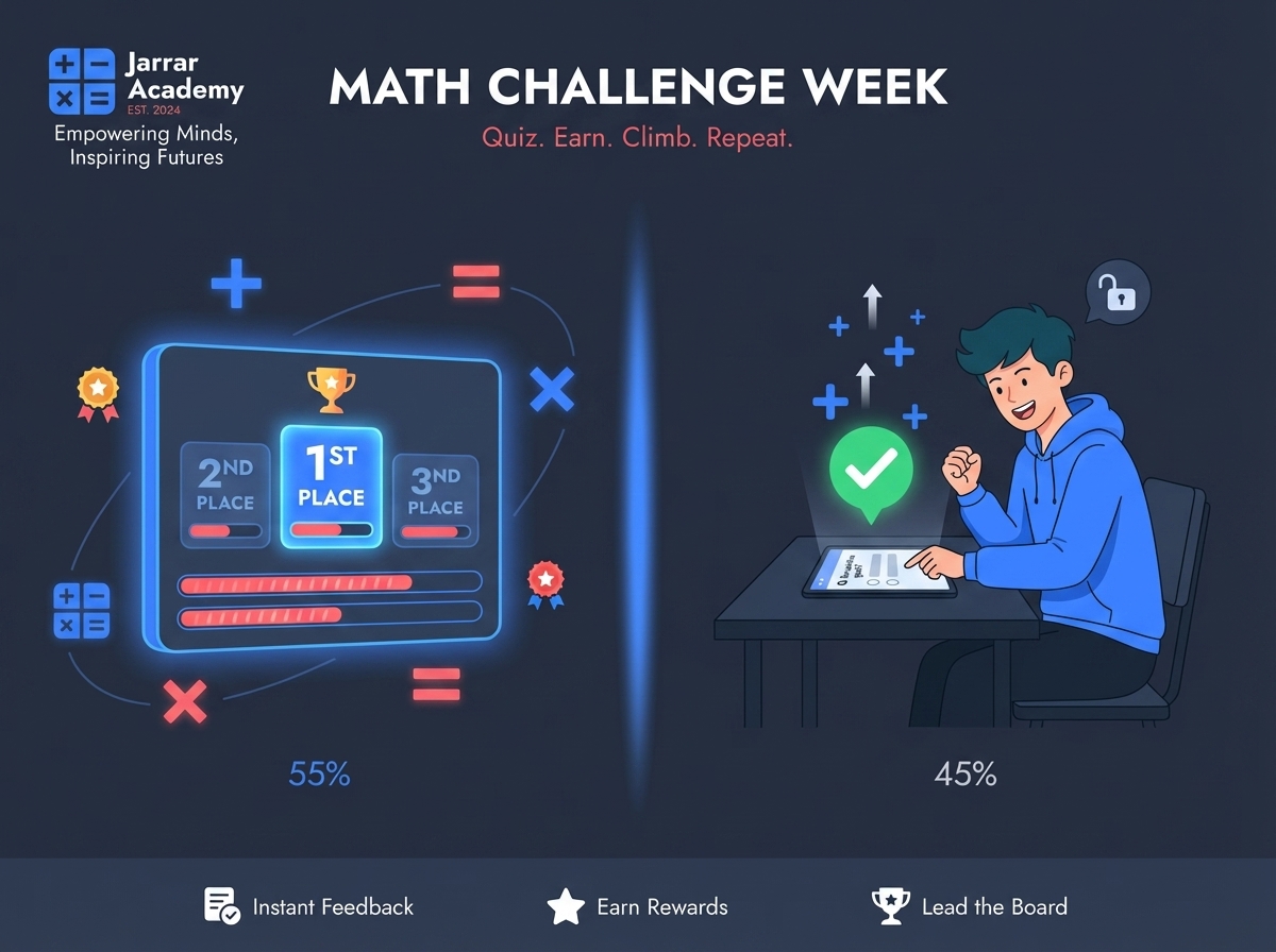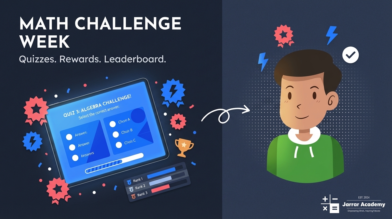 Jarrar Academy’s Math Challenge Week offers UAE curriculum-aligned, gamified math lessons with on-demand videos, instant quiz feedback, rewards, and leaderboards to boost engagement and mastery.