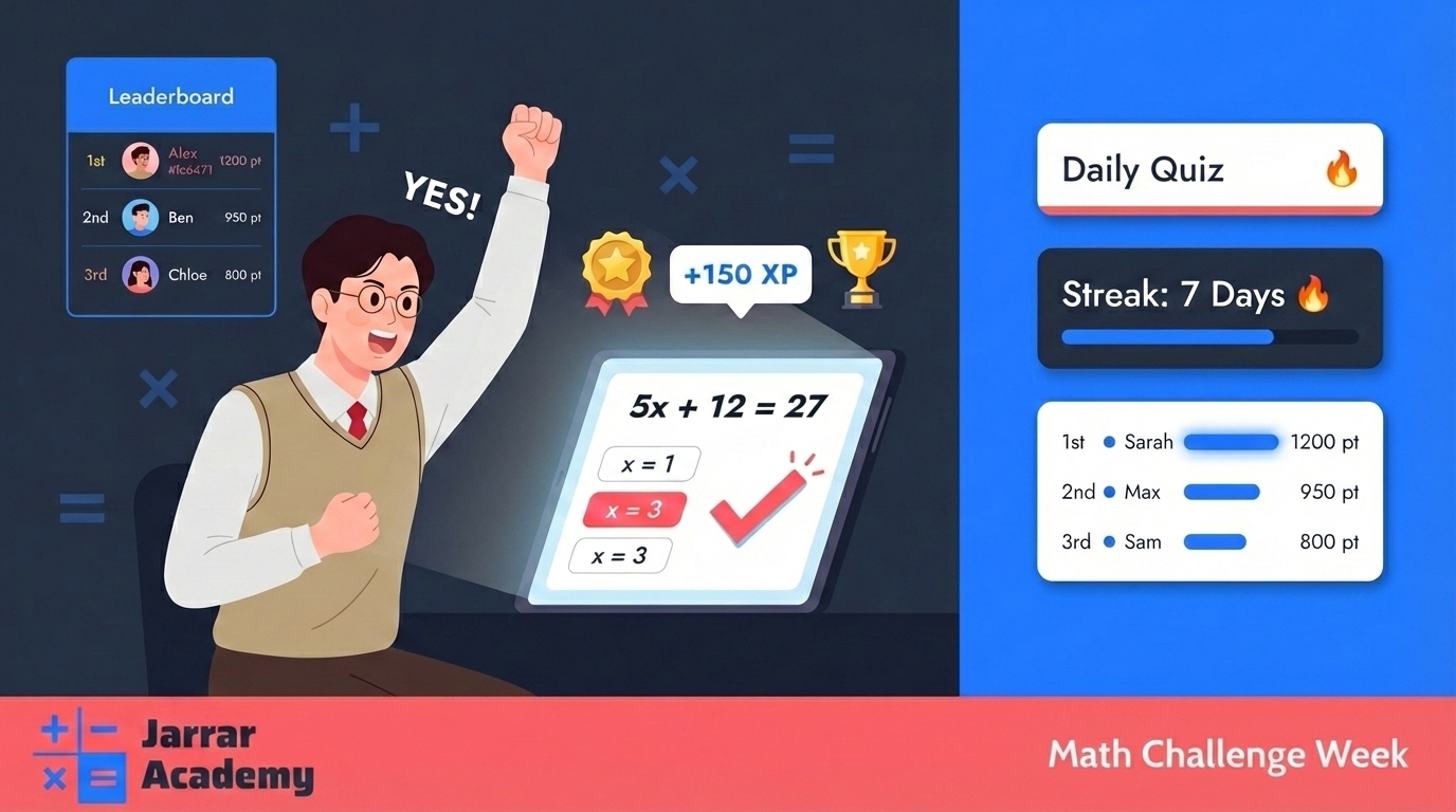 Forget boring math drills that feel like a chore. Jarrar Academy’s Math Challenge Week flips the script with gamified math that hooks you from the first quiz. Watch quick lessons, nail quizzes with instant feedback, earn rewards, and climb the leaderboard—all designed to keep you coming back for more. Ready to turn practice into a win streak? Let’s jump in! 🎮📚 https://jarraracademy.com/
